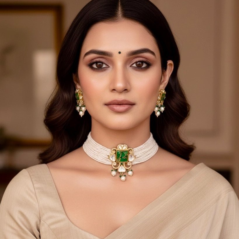 - How do I style this choker set? This choker set is versatile and can be paired with both traditional and contemporary outfits. For a classic look, wear it with a saree or lehenga.