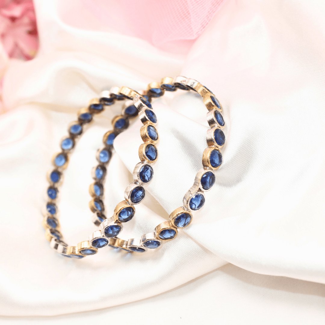DUAL-TONE ROUND STONE BANGLES- SET OF 2-blue