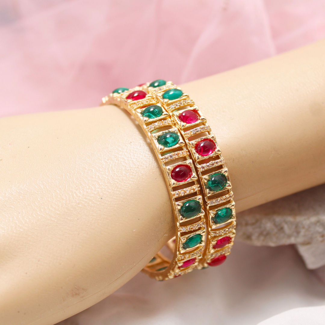 green and ruby stone bangles, dual-tone AD bangles, gold plated festive bangles, bridal bangles Navraee, ruby green zircon bangles