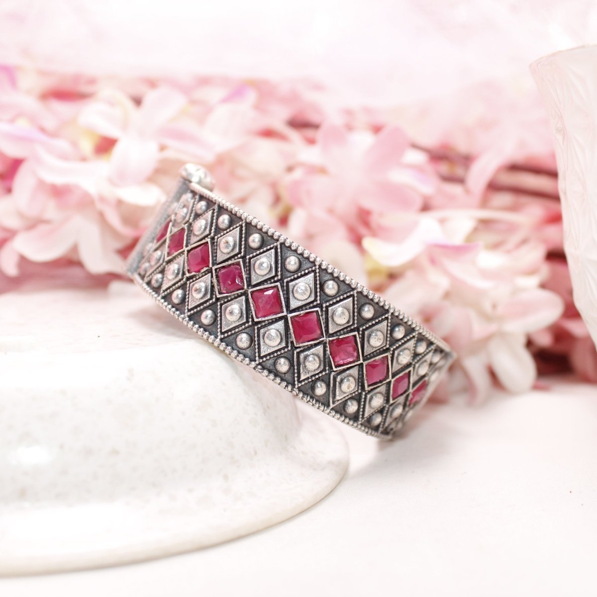 KAVERI-OXIDISED SILVER LOOK ALIKE KADA-RED