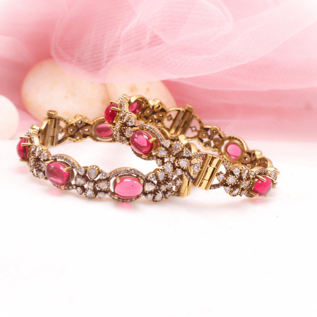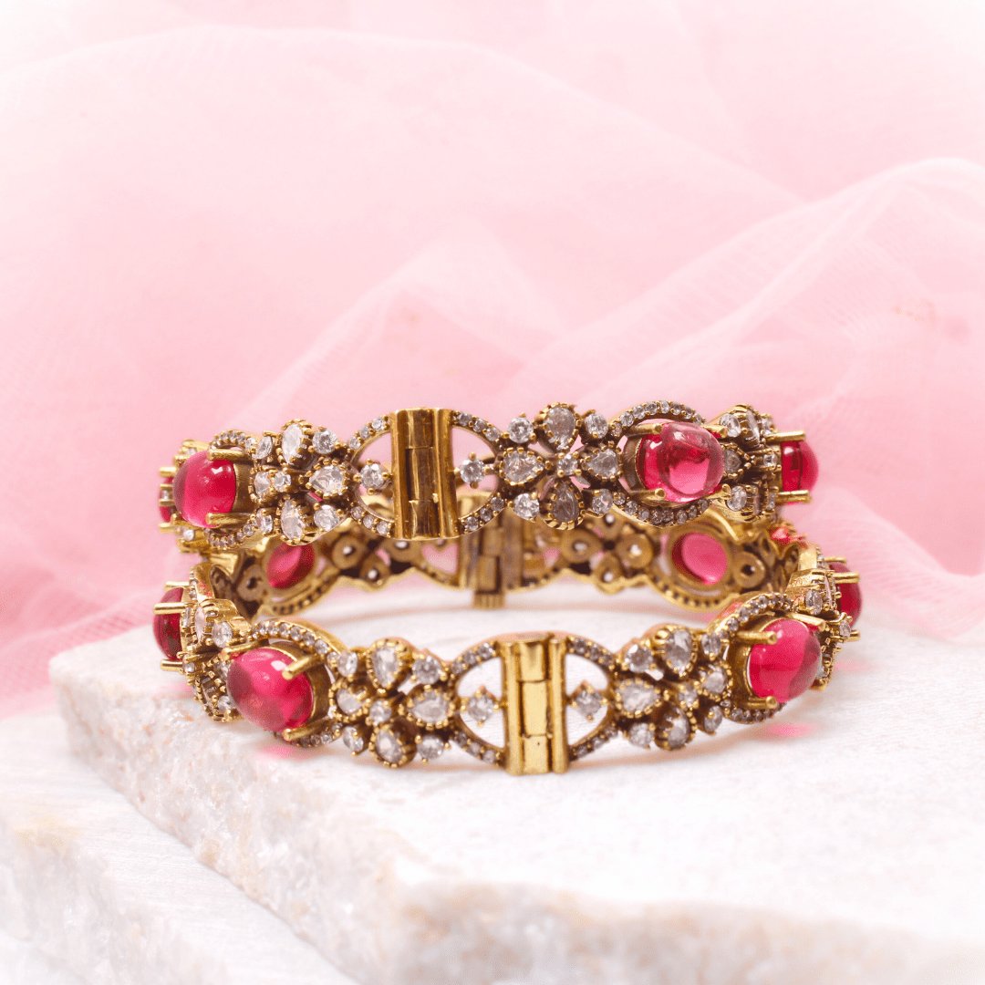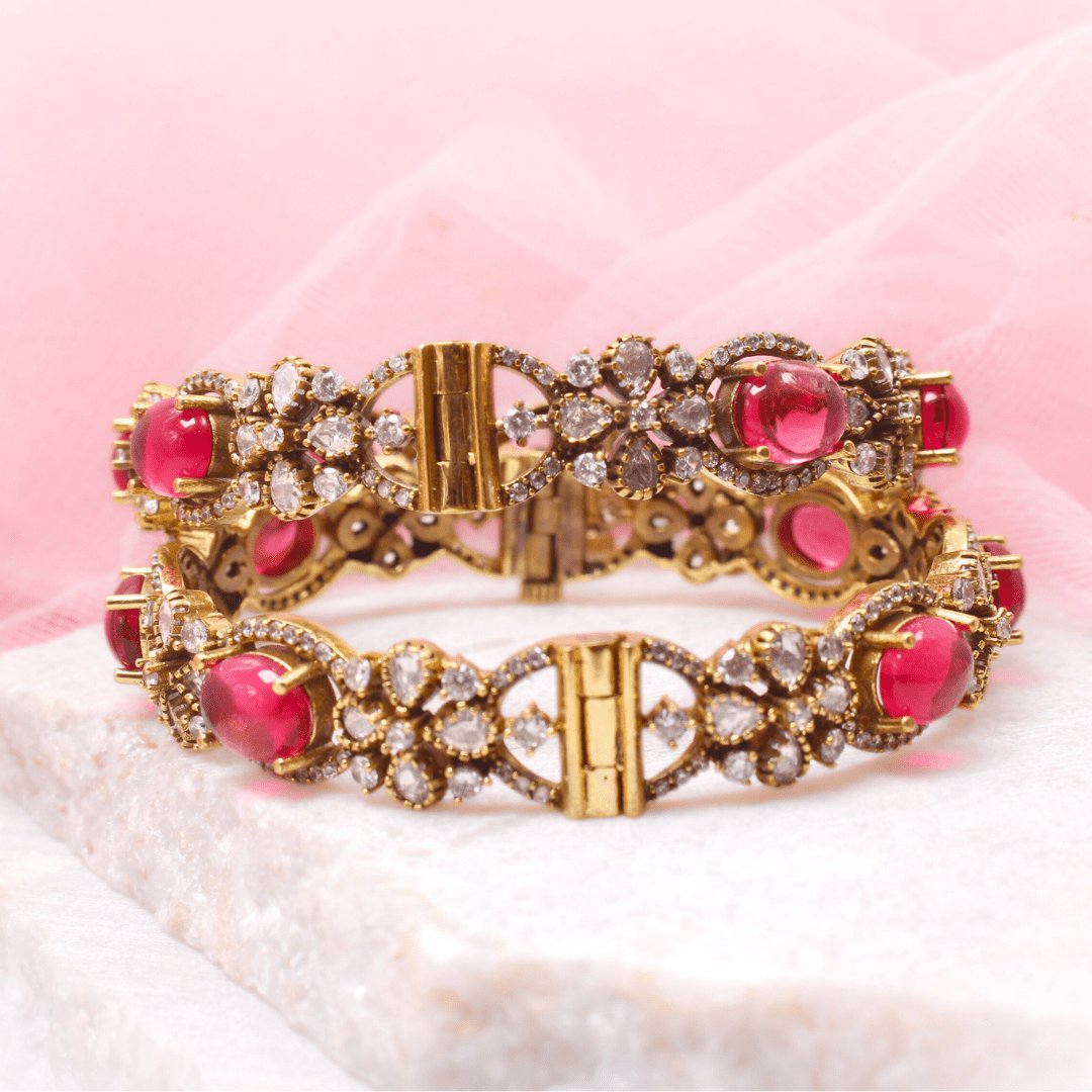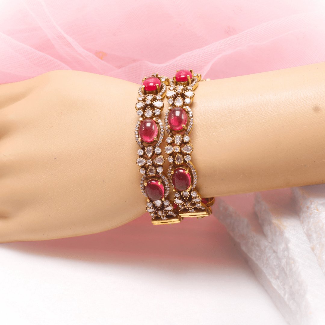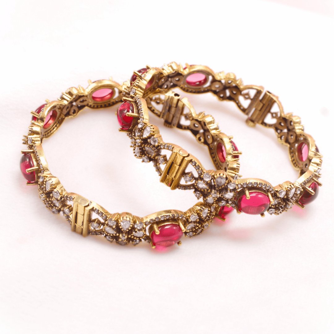 KIRAT ANTIQUE MOISSANITE KADA - (SET OF 2)- RED