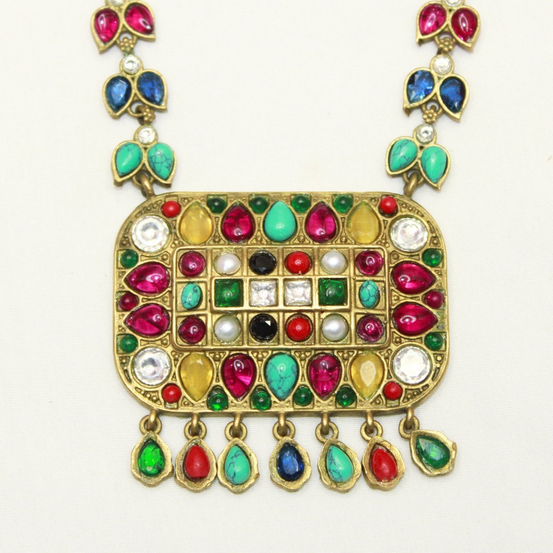 NAVRATNA ANTIQUE GOLD POLISH LONG NECKLACE