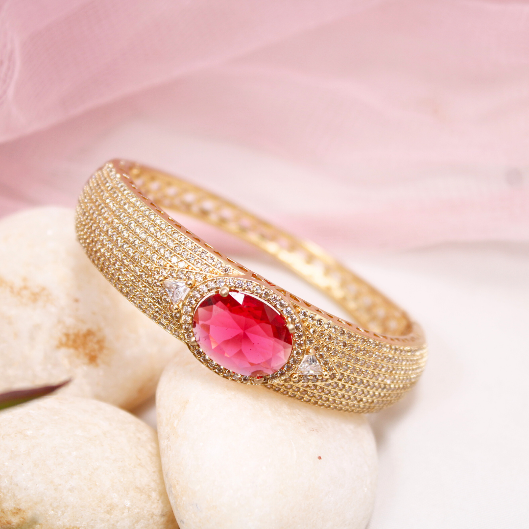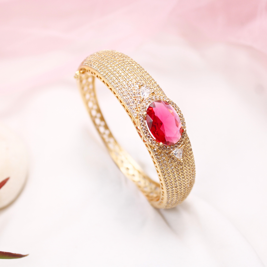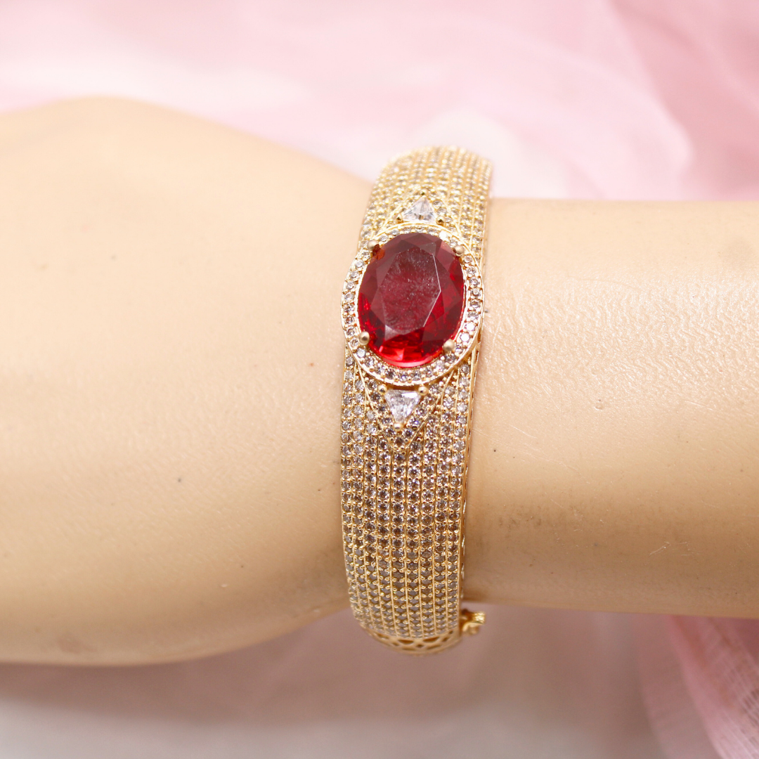 Oval Red Stone Openable Bracelet – Luxury Gold Kada