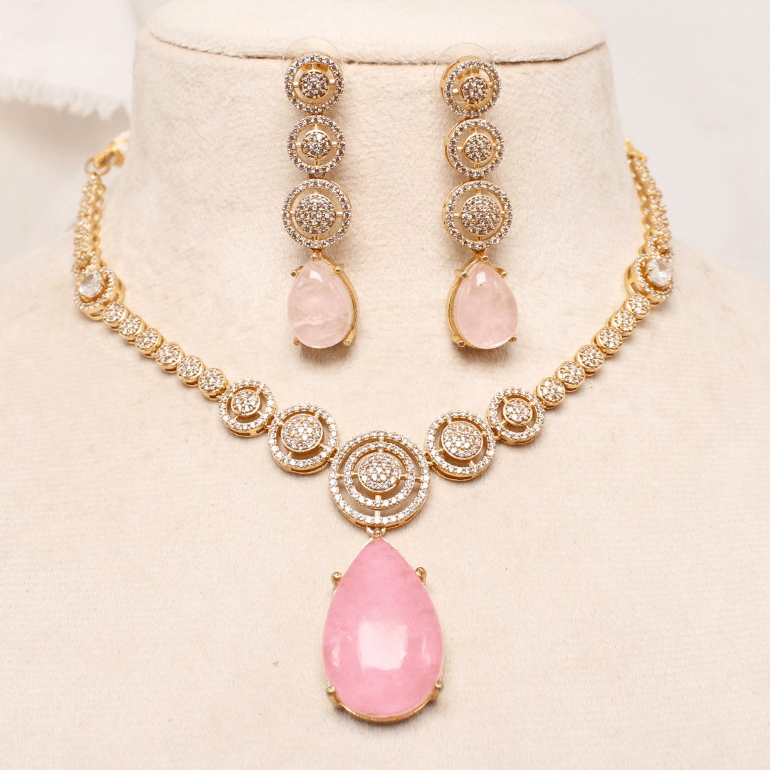 Pink Stone & AD Necklace Set Online | Gold Plated Party Wear Jewelry
