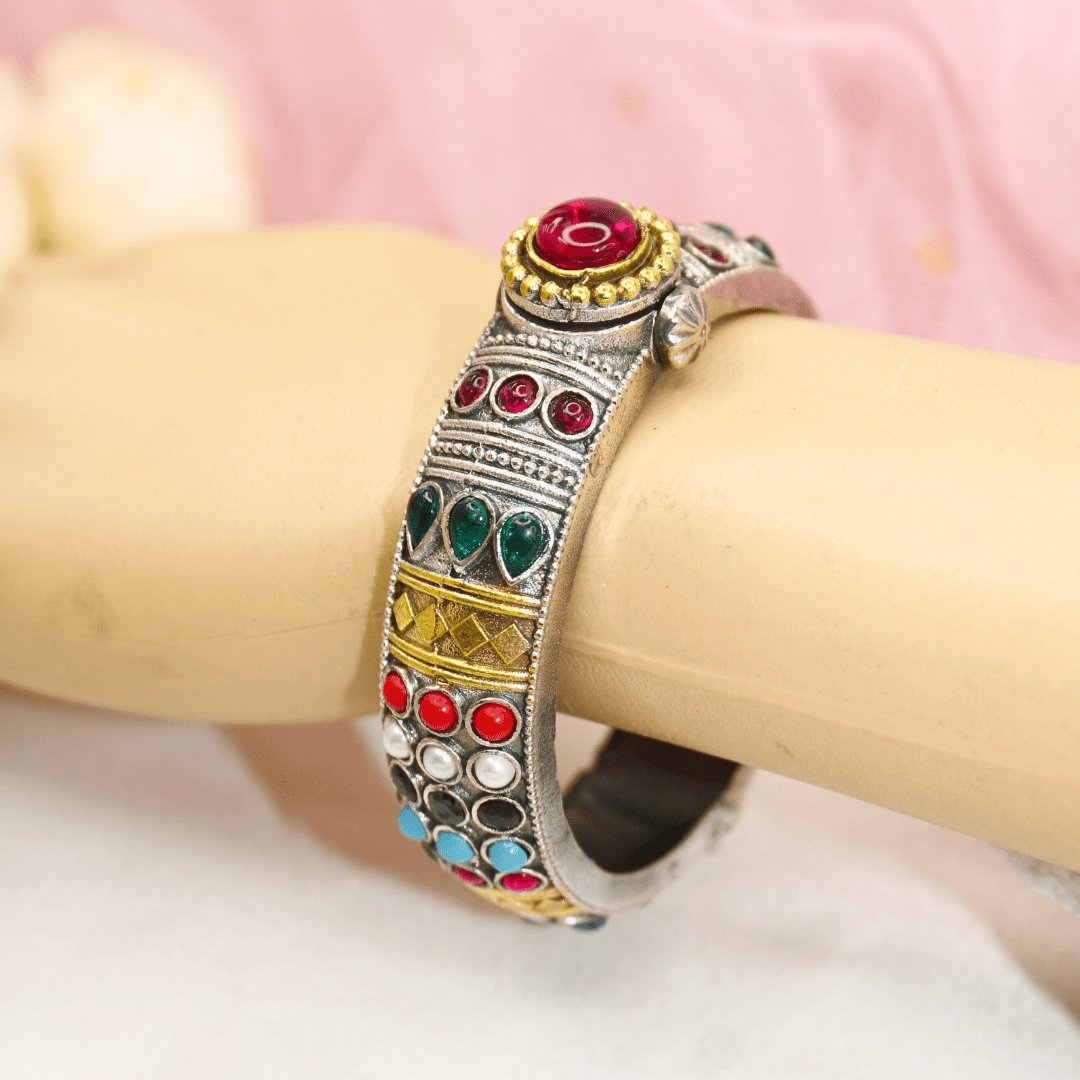 Rajwadi Navratan Big Stone Kada – Statement Openable Kada