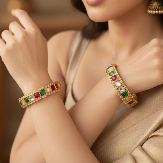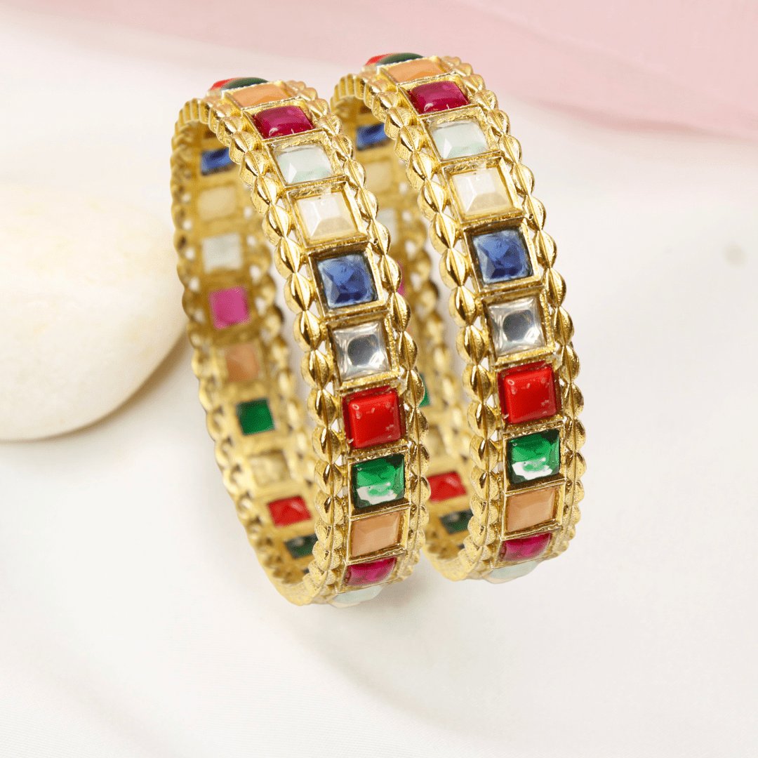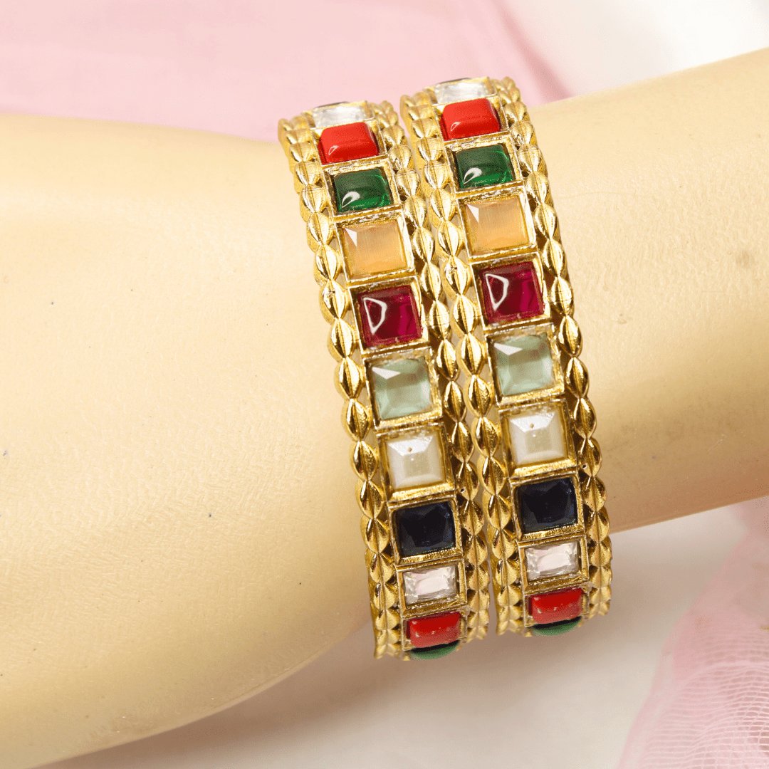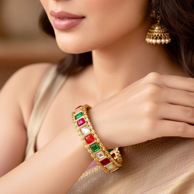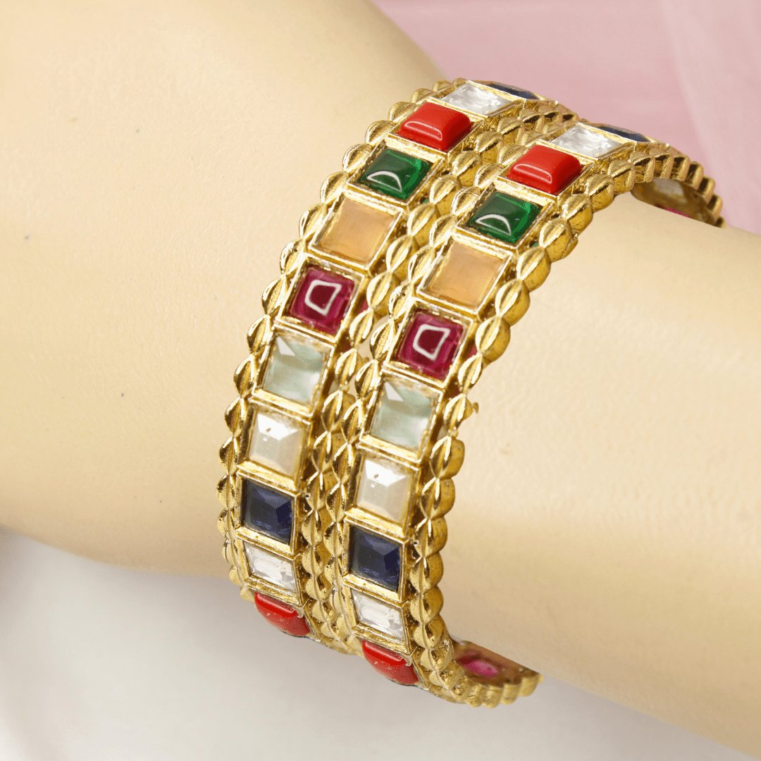 Rajwadi Square-Stone Kada Multicolour