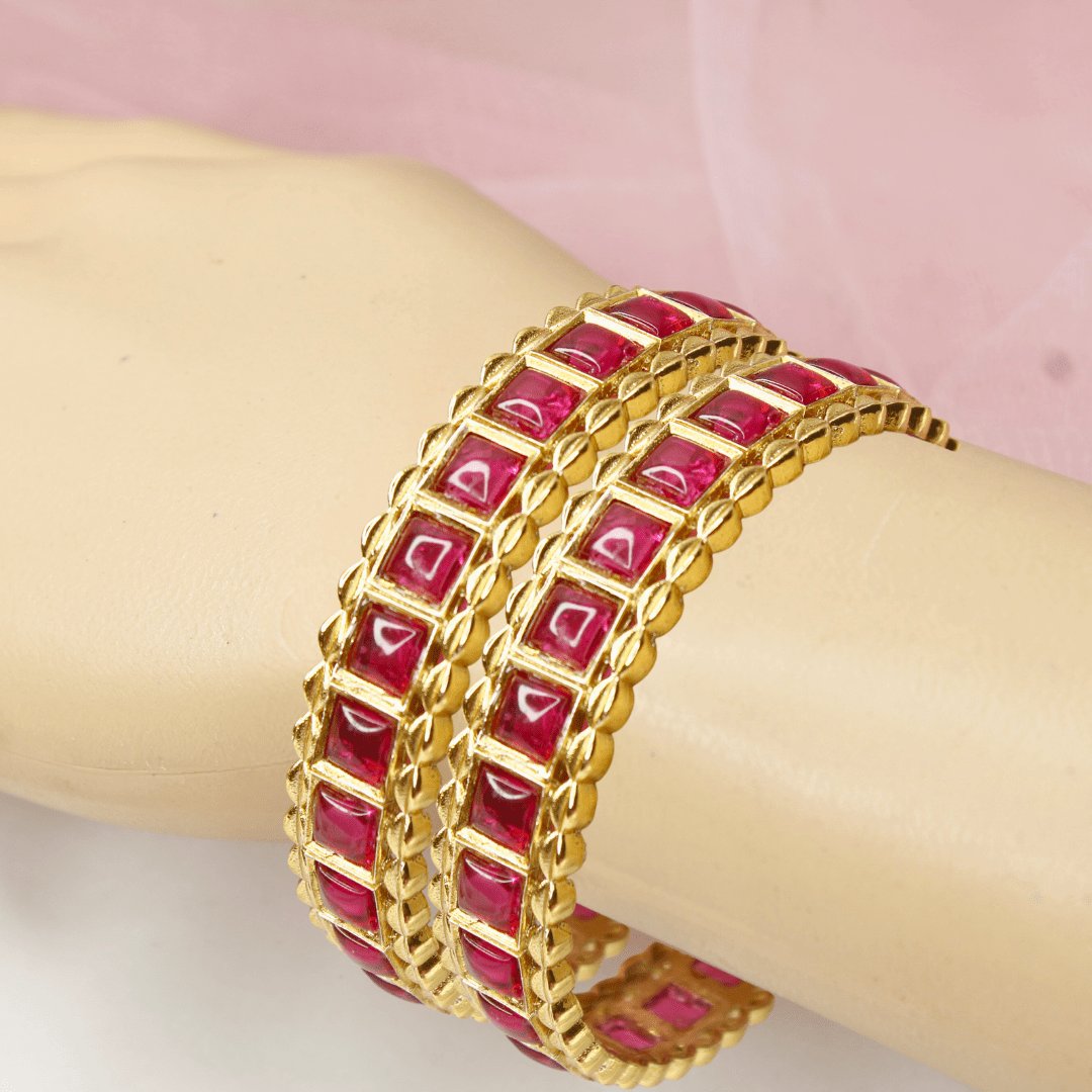 Ruby Pink Stone Bangles Set of 2 – Gold Plated Bridal & Festive Bangles
