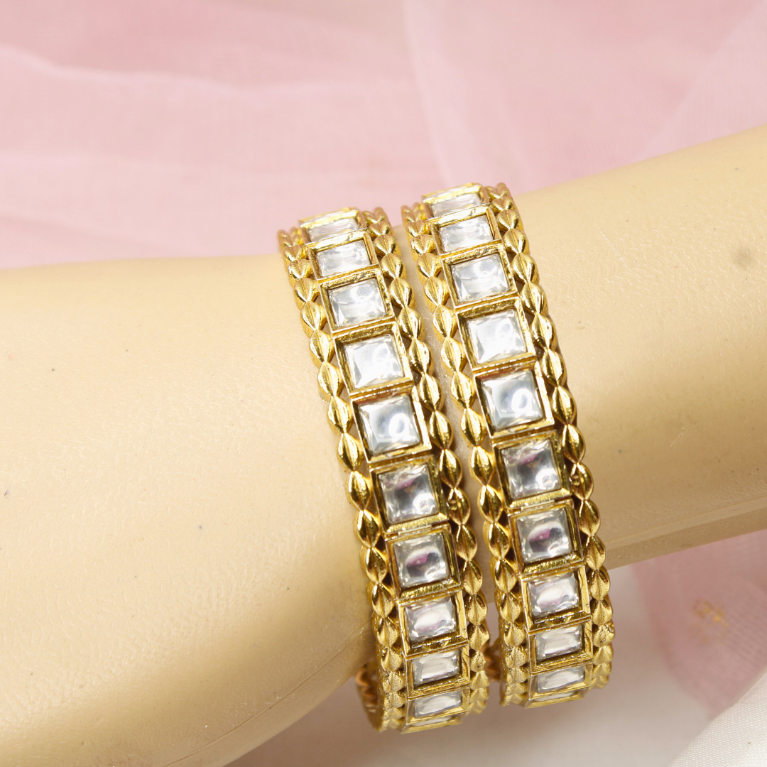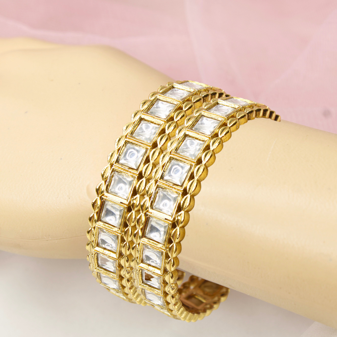 Mirror Polki Stone Bangles Set of 2 – Gold Plated Traditional Bangles