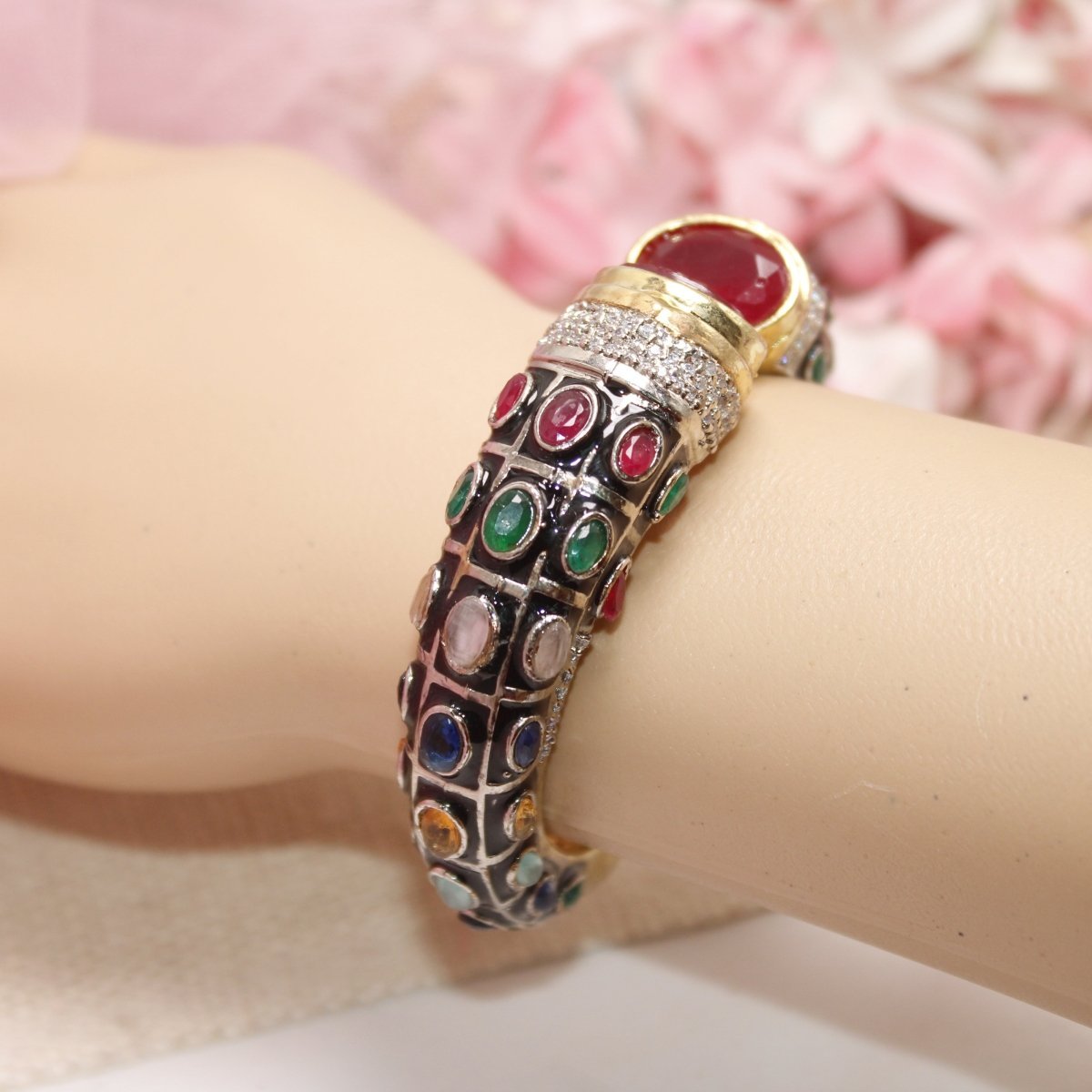 Add Navraee’s Rajwadi Stone & Meenakari Kada Gold Plated-Multicolour to your collection today!<<