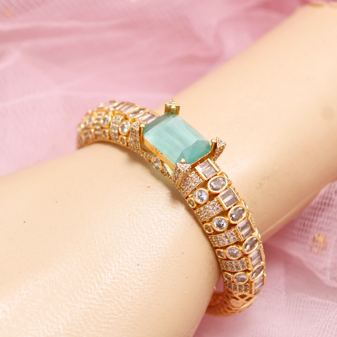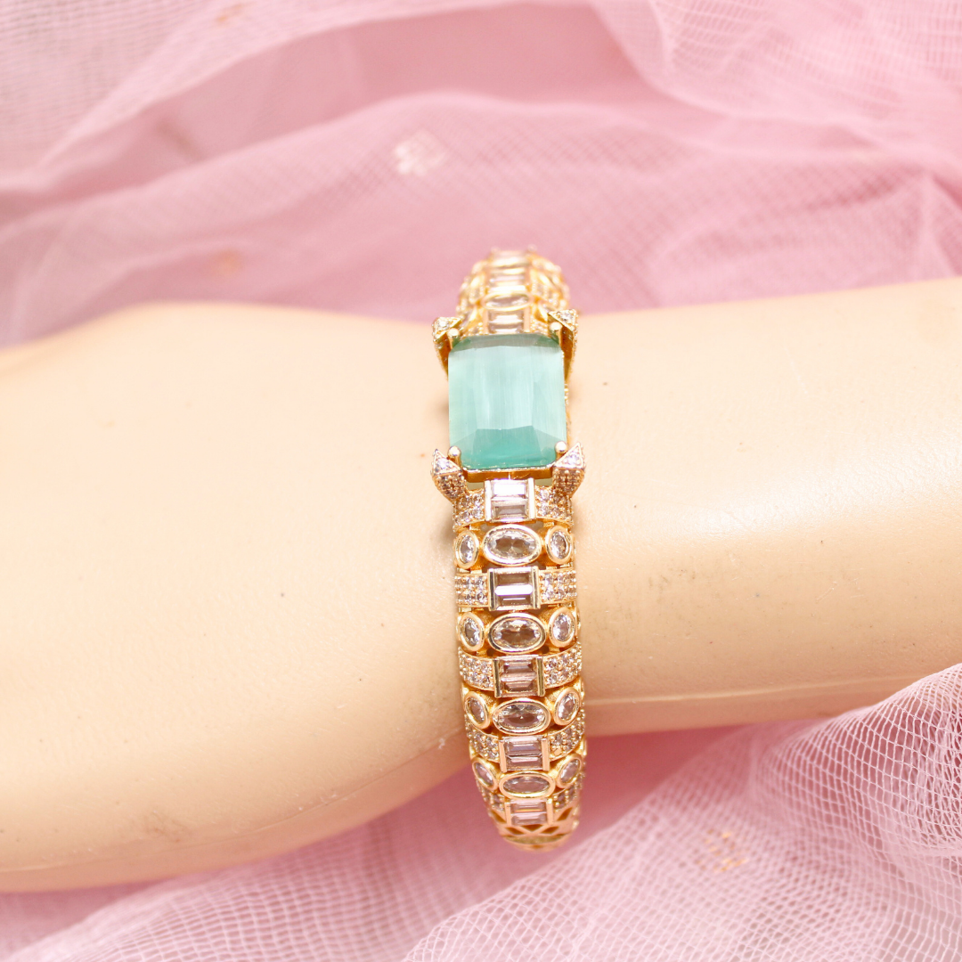 Turquoise Green Stone Openable Bracelet – Premium Gold Finish Kada