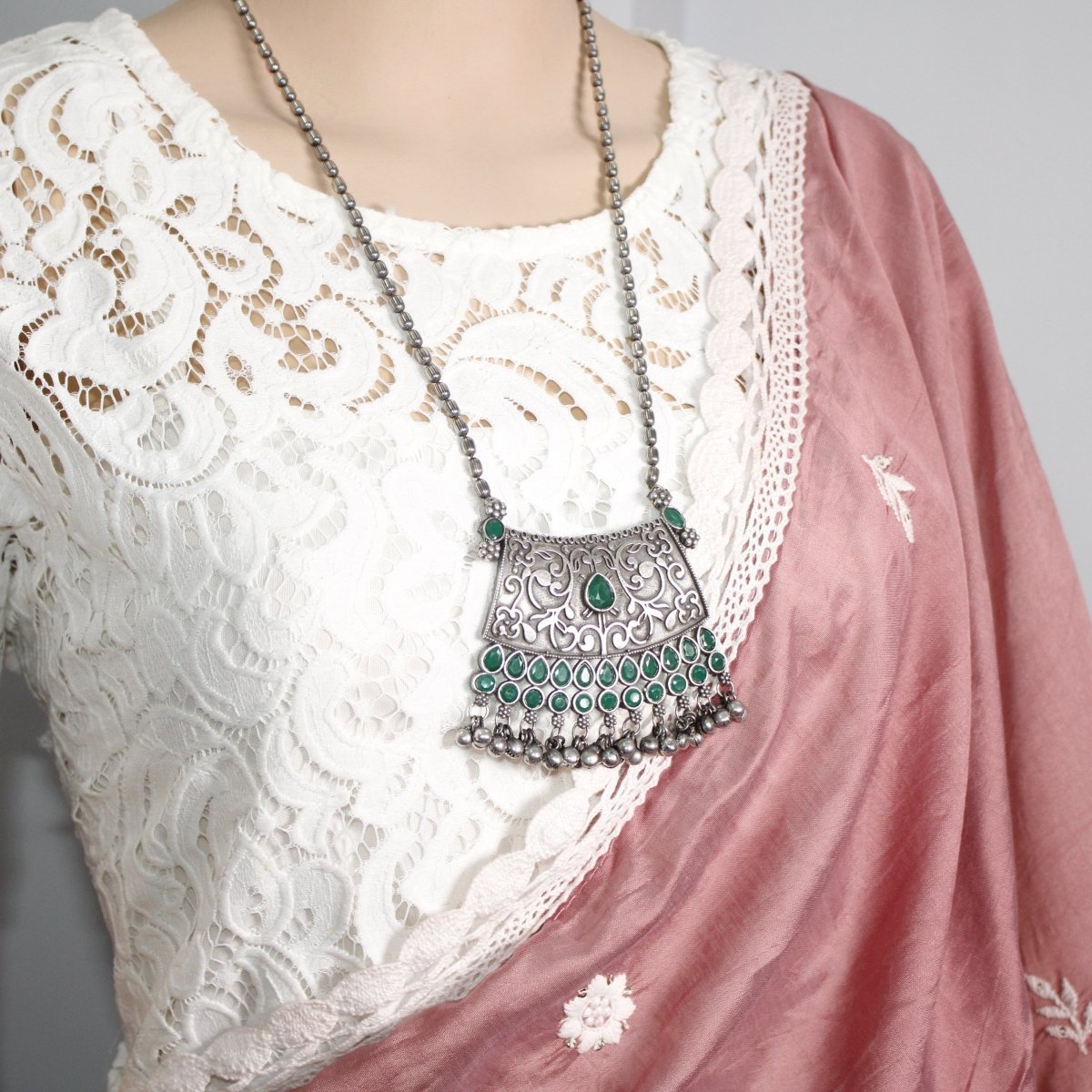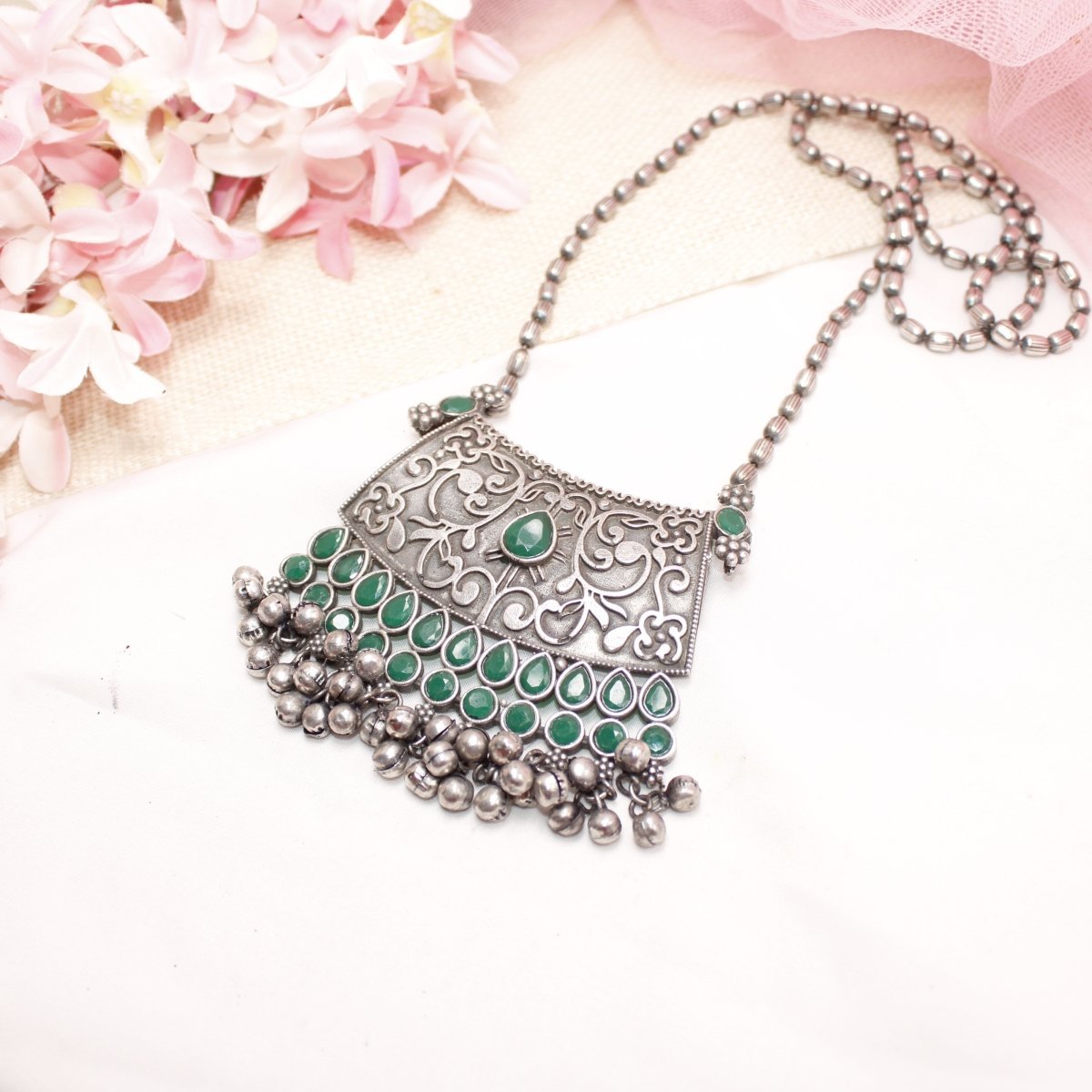 Add Navraee’s Vintage Look Silver Replica Rajputana Pendant-Green to your collection today!<<